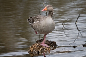 Die Graugans, (Anser anser) ist eine Art der Gattung Feldgänse (Anser) in der Familie der Entenvögel. (Anatidae) Graugänse zählen zu den häufigsten Wasservögeln und sind die zweitgrößte Gänseart in Europa. Sie sind neben den Schwanengänsen (Anser cygnoides), auf die vor allem asiatische Hausgänse zurückgehen, die wilden Vorfahren der domestizierten Hausgänse. Mitteleuropa gilt als die Regionin der diese Gans domestiziert wurde. Quelle: Wikipedia