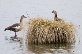 Die Nilgans (Alopochen aegyptiacus) ist der einzige Vertreter ihrer Gattung und wird heute meist den Halbgänsen zugerechnet. Sie ist afrikanischen Ursprungs und lebt an nahrungsreichen subtropischen Binnenseen und Flüssen. Sie gilt als der häufigste afrotropische Entenvogel. Quelle: Wikipedia