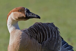 Die Schwanengans ist eine überwiegend braune, sehr große Gänseart. Auffällig ist der lange, vorderseits hellcremfarbene und scharf davon abgetrennt auf der…
