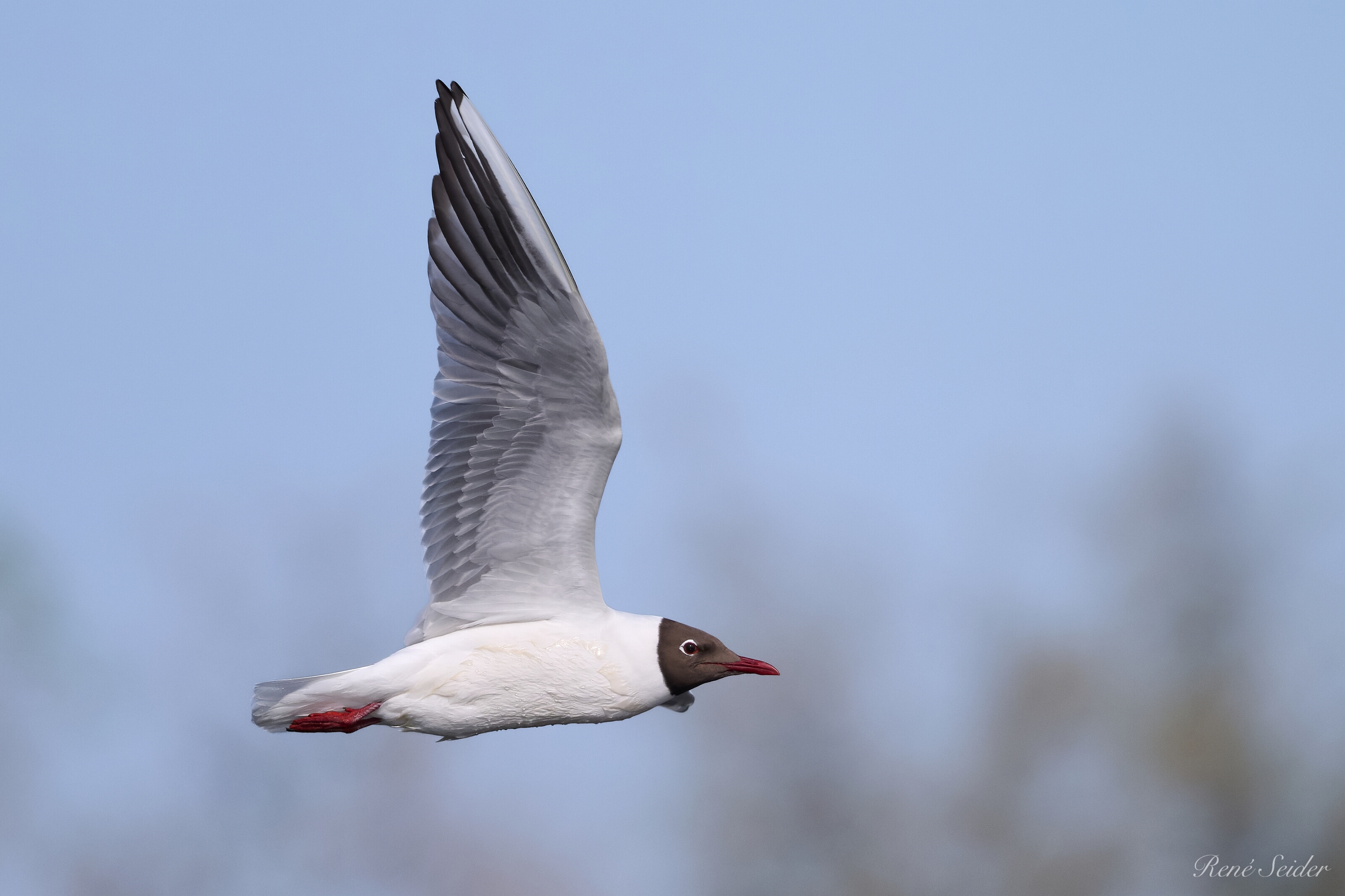 Die Lachmöwe (Chroicocephalus ridibundus, Syn. Larus ridibundus) ist eine Vogelart aus der Familie der Möwen (Laridae). Diese kleine Möwenart besiedelt weite Teile der nördlichen Paläarktis von Island und Irland bis Kamtschatka. Lachmöwen brüten in den Verlandungszonen größerer Gewässer vor allem im Binnenland, seit einiger Zeit jedoch auch zunehmend an Küsten. Die Art ist im nördlichen Mitteleuropa ein häufiger Brutvogel und verbringt auch den Winter in großer Zahl in Mittel- und Westeuropa. Quelle: Wikipedia