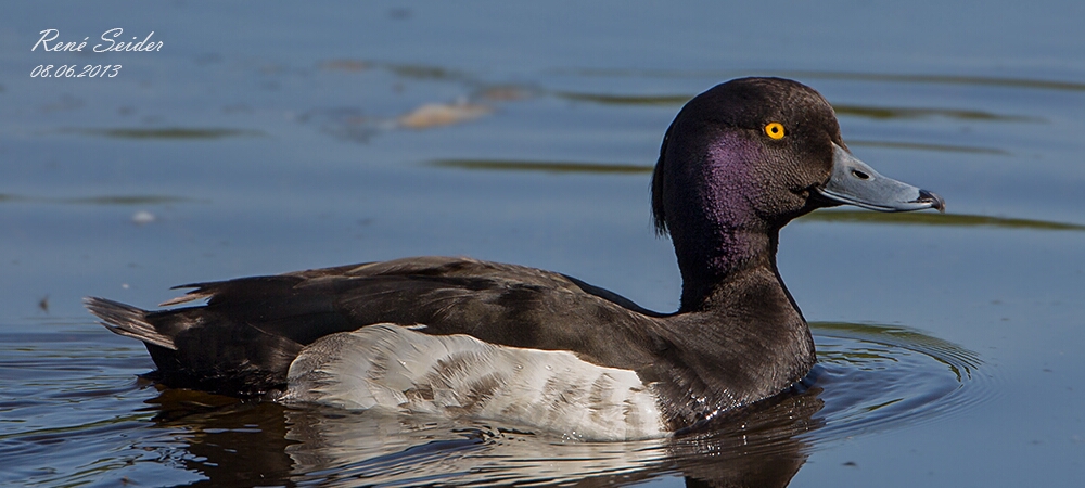 Die Reiherente (Aythya fuligula) ist eine Vogelart aus der Familie der Entenvögel. Sie zählt zu den so genannten Tauchenten. Es handelt sich um eine verhältnismäßig kleine, kompakt gebaute Ente. Auffällig sind der verhältnismäßig kurze Schnabel und der auffällig runde Kopf. Die Männchen haben am Hinterkopf einen langen, herabhängenden Schopf. Das Weibchen weist eine kurze Holle auf. Die Reiherente ist in Mitteleuropa ein verbreiteter Brut- und Jahresvogel. Quelle: Wikipedia