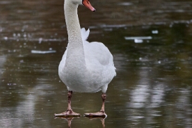 Der Höckerschwan ist eine Vogelart, die innerhalb der Entenvögel zur Gattung der Schwäne und zur Unterfamilie der Gänse gehört. Er hält sich bevorzugt auf Seen, Park- und Fischteichen, in seichten Meeresbuchten und im Winter auch auf offenen Flussläufen auf. Schwäne haben in Mitteleuropa nur wenige Fressfeinde und werden kaum bejagt, obwohl sie zu den jagdbaren Tierarten gehören. Zu einer Bestandsregulierung kommt es durch die stark ausgeprägte Territorialität der Schwäne während der Brutzeit sowie durch Verluste in strengen Winterhalbjahren. Quelle: Wikipedia