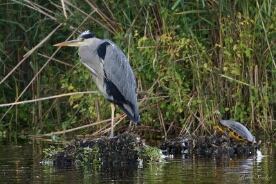 Der Graureiher (Ardea cinerea), umgangssprachlich auch Fischreiher, ist eine Vogelart aus der Ordnung der Schreitvögel (Ciconiiformes). Er ist in Eurasien und Afrika weit verbreitet und häufig. Weltweit werden vier Unterarten unterschieden. In Mitteleuropa ist er mit der Nominatform Ardea cinera cinera vertreten. Der Graureiher erreicht eine Körperlänge von 90 bis 98 cm und wiegt meist zwischen 1 und 2 kg. Gutgenährte Vögel können 2 kg überschreiten, abgemagerte Exemplare nur bis zu 810 g wiegen. Die Flügelspannweite beträgt zwischen 175 und 195 cm. Quelle: Wikipedia