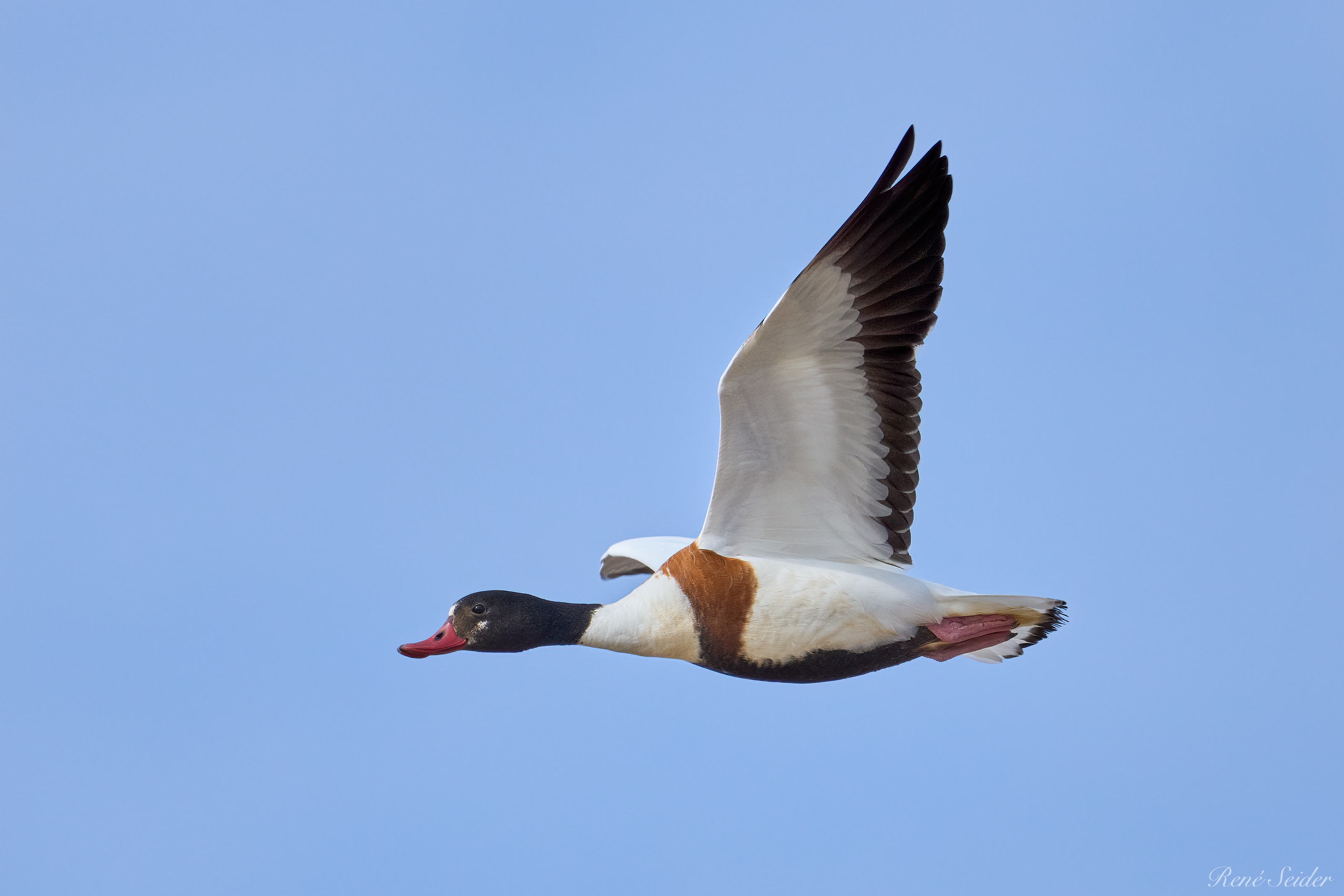 Die Brandgans ist eine Art aus der Familie der Entenvögel, die zur Unterfamilie der Halbgänse gehört. Brandgänse erreichen ausgewachsen eine Körperlänge von 58 bis 67 cm und haben eine Flügelspannweite von 110 bis 133 cm. Das Gewicht schwankt sehr stark. Die Art hat eine gänseartige Gestalt und ist auf Grund der auffallend kontrastreichen Färbung des Gefieders unverwechselbar. Durch die Gefiederfärbung besteht zwar eine entfernte Ähnlichkeit mit der Löffelente, die Größe der Brandgans, ihre Langbeinigkeit sowie ihre Körperhaltung und ihr kurzer Schnabel schließen jedoch aus, dass sie mit dieser Ente verwechselt werden kann. Quelle: Wikipedia
