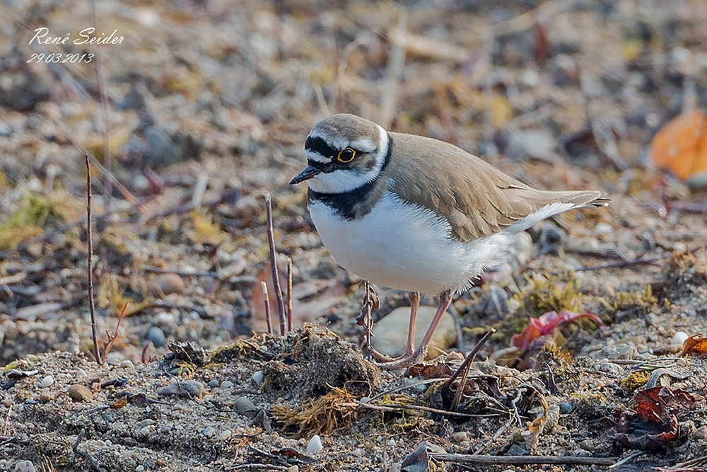 Der Flussregenpfeifer (Charadrius dubius) ist eine Vogelart aus der Familie der Regenpfeifer (Charadriidae). In Mitteleuropa ist der Flussregenpfeifer ein verbreiteter aber wenig häufiger Brut- und Sommervogel. Während der Zugzeiten sind sie verhältnismäßig häufig als Durchzügler und Rastvogel zu beobachten. Ein ausgewachsener Flussregenpfeifer wird 15 bis 18 cm groß und wiegt 25 bis 55 g. Die Flügelspannweite erreicht 34 bis 45 cm. Vom sehr ähnlichen Sandregenpfeifer unterscheidet sich der Flussregenpfeifer durch seine kleinere und schlankere Erscheinung. Er hat außerdem einen dunkleren Schnabel und auffällig gelbe Augenringe, die dem Sandregenpfeifer fehlen. Quelle: Wikipedia