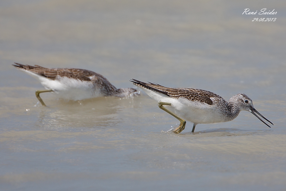 Der Grünschenkel (Tringa nebularia) ist eine monotypische Vogelart aus der Familie der Schnepfenvögel (Scolopacidae). Der Grünschenkel ist ein Brutvogel der borealen Zone Nordeurasiens. In Mitteleuropa ist er während der Zugzeiten ein regelmäßiger Durchzügler. Im Wattenmeer der Niederlande können im Mai sowie im Juli bis September mehrere tausend Grünschenkel beobachtet werden. Ein ausgewachsener Grünschenkel erreicht eine Körpergröße von 33 Zentimetern[2] und ist somit etwas größer und vor allem langbeiniger als der Rotschenkel. Er erreicht eine Flügelspannweite bis zu 70 cm und wiegt bis 280 g. Quelle: Wikipedia