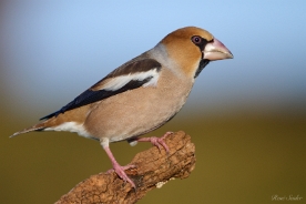 Der Kernbeißer ist die größte in Europa heimische Art der Finken. Der große und kräftige Kegelschnabel des sogenannten „Finkenkönigs“ stellt ein auffälliges Merkmal dar. Der Kernbeißer zeichnet sich durch seine gedrungene Gestalt aus und ist an seinem kräftigen, runden Kopf, dem großen Kegelschnabel und kurzen Schwanz leicht zu erkennen. Kernbeißer erreichen eine Körperlänge von 16,5 bis 18 cm. Das Körpergewicht liegt bei 48 bis 62 gr. Die Flügelspannweite beträgt 29 bis 33 cm. Quelle: Wikipedia