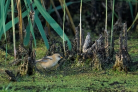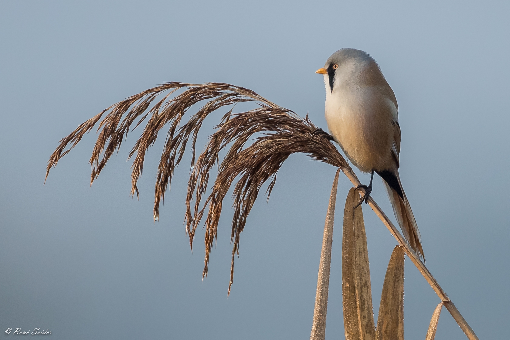 Die Bartmeise ist eine Vogelart und wird heute meist als einzige Art der damit monotypischen Panuridae betrachtet. Sie ist ein meisenartiger, langschwänziger Bewohner großer Schilfflächen. Ihre Länge beträgt zwischen 14 und 15,5 cm. Sie ist klein, hell gelbbraun und hat einen hell gelbbraunen Schwanz. Das adulte Männchen besitzt einen hell blaugrauen Kopf mit langem schwarzen Bartstreif und weißer Kehle. Bei dem adulten Weibchen dagegen ist der Kopf beigebraun ohne schwarzen Bart. Die Kehle ist schmutzigweiß und die Unterschwanzdecken sind beige. Jungvögel ähneln adulten Weibchen, haben jedoch eine schwarze Mantelmitte und schwarze Bereiche im Schwanz. Ihr Gefieder ist eher gelbbeige. Quelle: Wikipedia