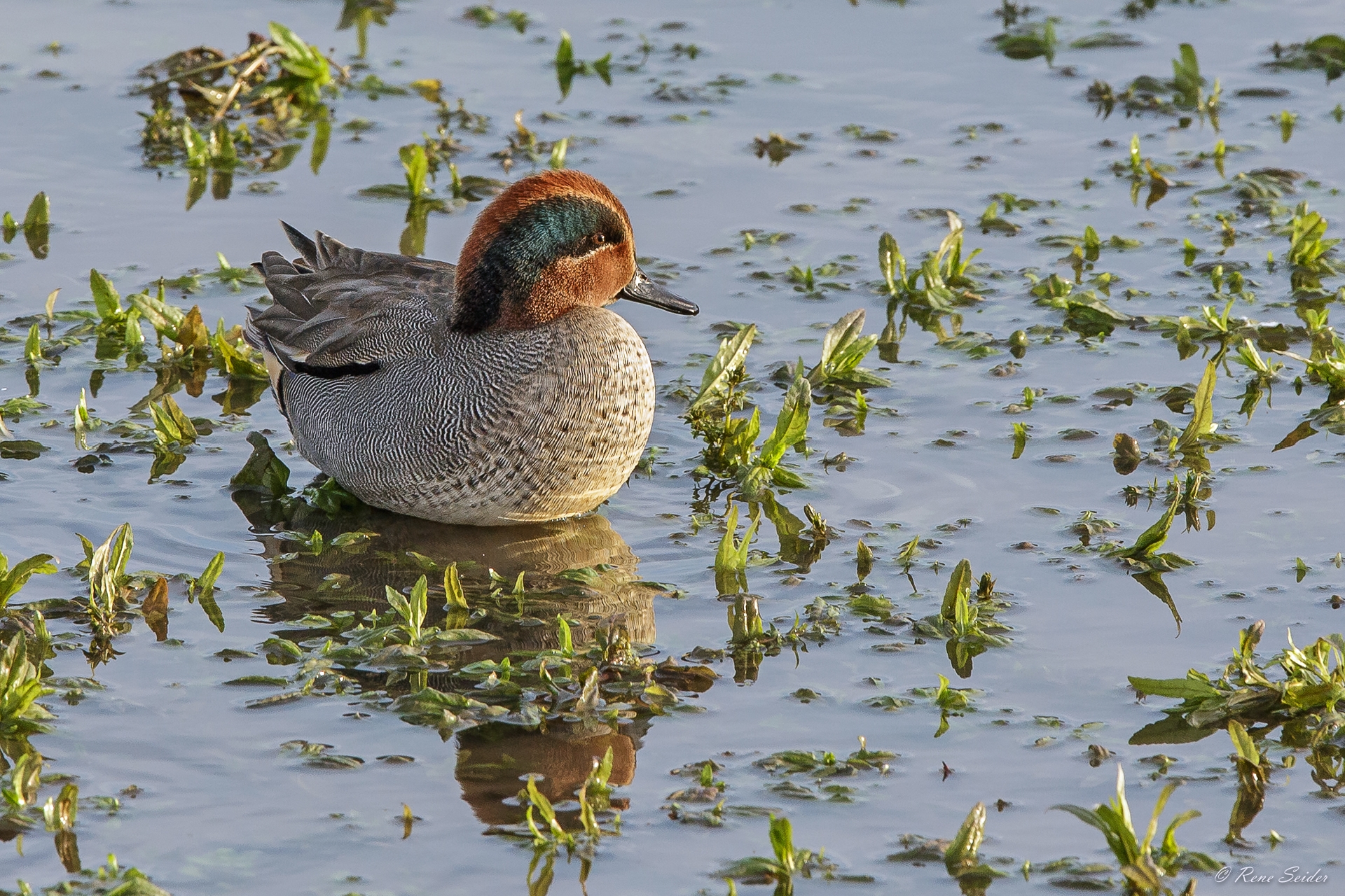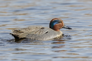 Die Krickente (Anas crecca), auch Kriekente, ist eine Vogelart aus der Familie der Entenvögel und gehört zur Gattung der Eigentlichen Schwimmenten (Anas). Krickenten zählen zu den zahlreichsten und am weitesten verbreiteten Entenarten der nördlichen Hemisphäre. Sie sind leicht an ihrem kleinen Körperbau zu erkennen: Mit 35 bis 36 cm Länge ist sie in Europa und Nordamerika die kleinste Entenart. Sie ist damit kaum länger als eine Stadttaube. Quelle: Wikipedia