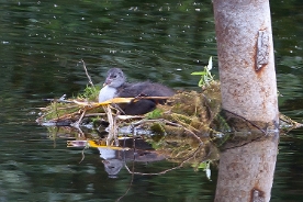 Das Blässhuhn (Fulica atra) ist eine Art aus der Familie der Rallen. Es wird auch Blässralle genannt und auch die alte Schreibweise mit „e“ (Blesshuhn, Blessralle) ist noch häufig anzutreffen. Regionale Namen sind: Wasserhuhn, Rohrhuhn, Duckente, Huhent, Belche, Blesse, Bölle, Böichn, Hurbel, Lietze, Zappe, Watertütje (Plattdeutsch) und Taucherli (Schweiz). Das Blässhuhn ist eine mit 36–42 cm Körperlänge mittelgroße, rundliche Ralle, die meist entenartig schwimmend auf dem Wasser anzutreffen ist und dabei relativ hoch im Wasser liegt. Quelle: Wikipedia