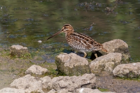 Die Bekassine (Gallinago gallinago) ist eine Art aus der Familie der Schnepfenvögel und der Ordnung der Watvögel. Von allen Schnepfenvögel ist dies die weltweit verbreitetste Art. Es werden drei Unterarten unterschieden, sechs biogeografische Populationen unterteilt werden. In Mitteleuropa ist die Nominatform Gallinago die in gallinago gallinago ein Brut- und Sommervogel sowie auch Jahresvogel. Sie ist außerdem während der Zugzeiten ein regelmäßiger Durchzügler. In dieser Zeit sind in den Niederlanden an geeigneten Rastplätzen bis zu 250.000 Individuen versammelt. Quelle: Wikipedia