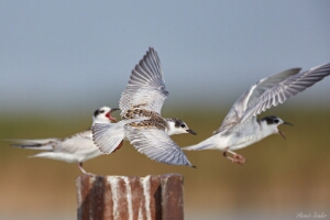 Das Männchen der Weißflügelseeschwalbe hat einen schwarzen Kopf, Hals und Vorderrücken. Ein dunkles Grau zeigen Schultergefieder, Rücken und Unterseite bis zum…