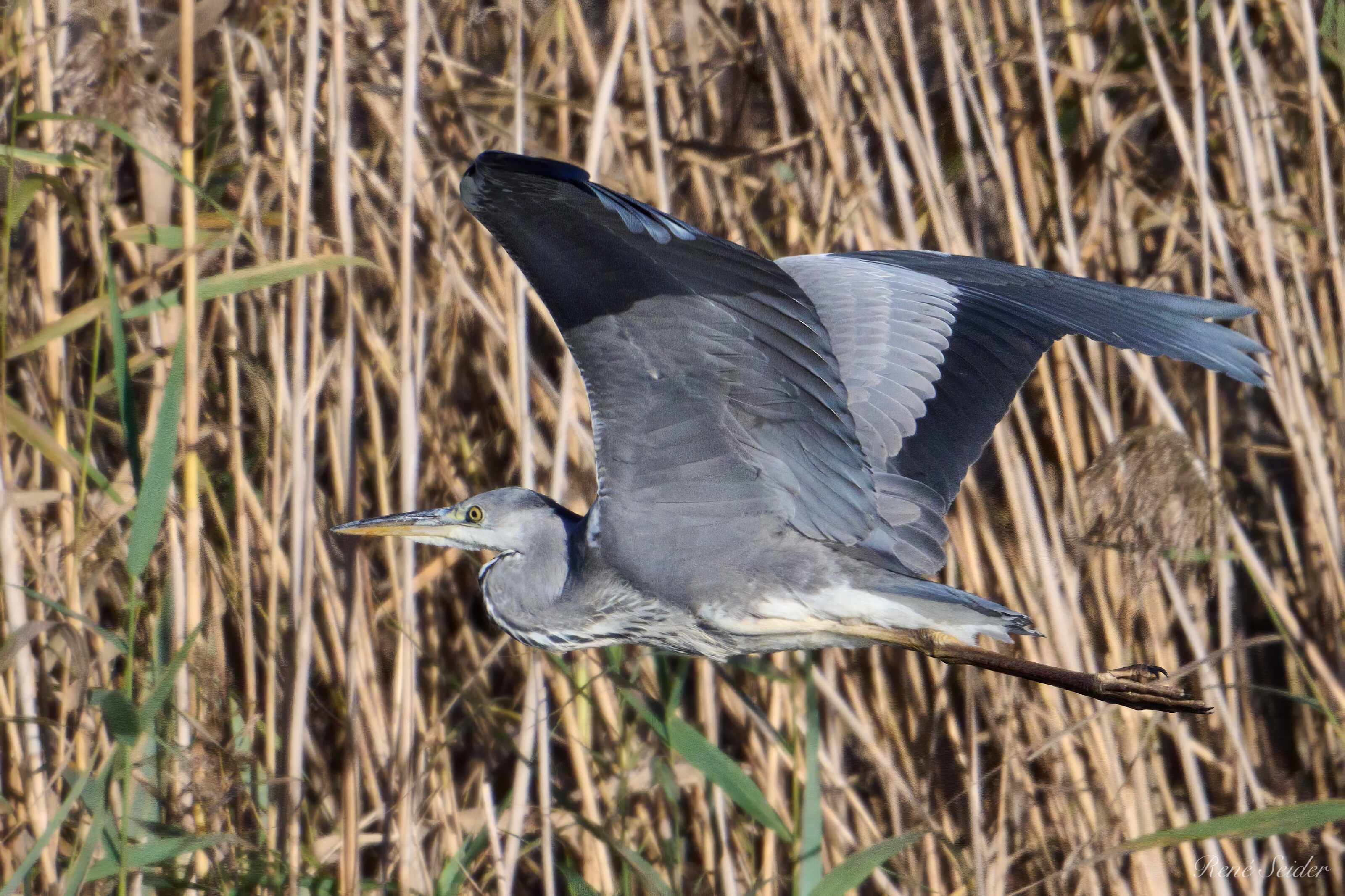 Der Graureiher (Ardea cinerea), umgangssprachlich auch Fischreiher, ist eine Vogelart aus der Ordnung der Schreitvögel (Ciconiiformes). Er ist in Eurasien und Afrika weit verbreitet und häufig. Weltweit werden vier Unterarten unterschieden. In Mitteleuropa ist er mit der Nominatform Ardea cinera cinera vertreten. Der Graureiher erreicht eine Körperlänge von 90 bis 98 cm und wiegt meist zwischen 1 und 2 kg. Gutgenährte Vögel können 2 kg überschreiten, abgemagerte Exemplare nur bis zu 810 g wiegen. Die Flügelspannweite beträgt zwischen 175 und 195 cm. Quelle: Wikipedia
