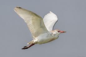 Der Kuhreiher erreicht eine Körperlänge von 46 bis 56 cm und wiegt zwischen 300 und 400 gr. Die Flügelspannweite beträgt 88 bis 96 cm. Auf den ersten Blick erinnert der Kuhreiher an den Rallenreiher, der jedoch etwas dunkler und kleiner ist. Ausgewachsene Tiere besitzen ein hauptsächlich weißes Gefieder, einen gelben Schnabel und gelbe Beine. Außerhalb der Fortpflanzungszeit ist die Augenumgebung grünlich bis gelb. Im Prachtkleid zur Brutzeit trägt der Kuhreiher Federbüschel auf dem Kopf und rotbräunlich gefärbte Federn auf Rücken, Brust und Kopf. Die Augenumgebung ist dann blau, während der Hochbalz ist außerdem der Schnabel und die Zügel rötlich. Quelle: Wikipedia
